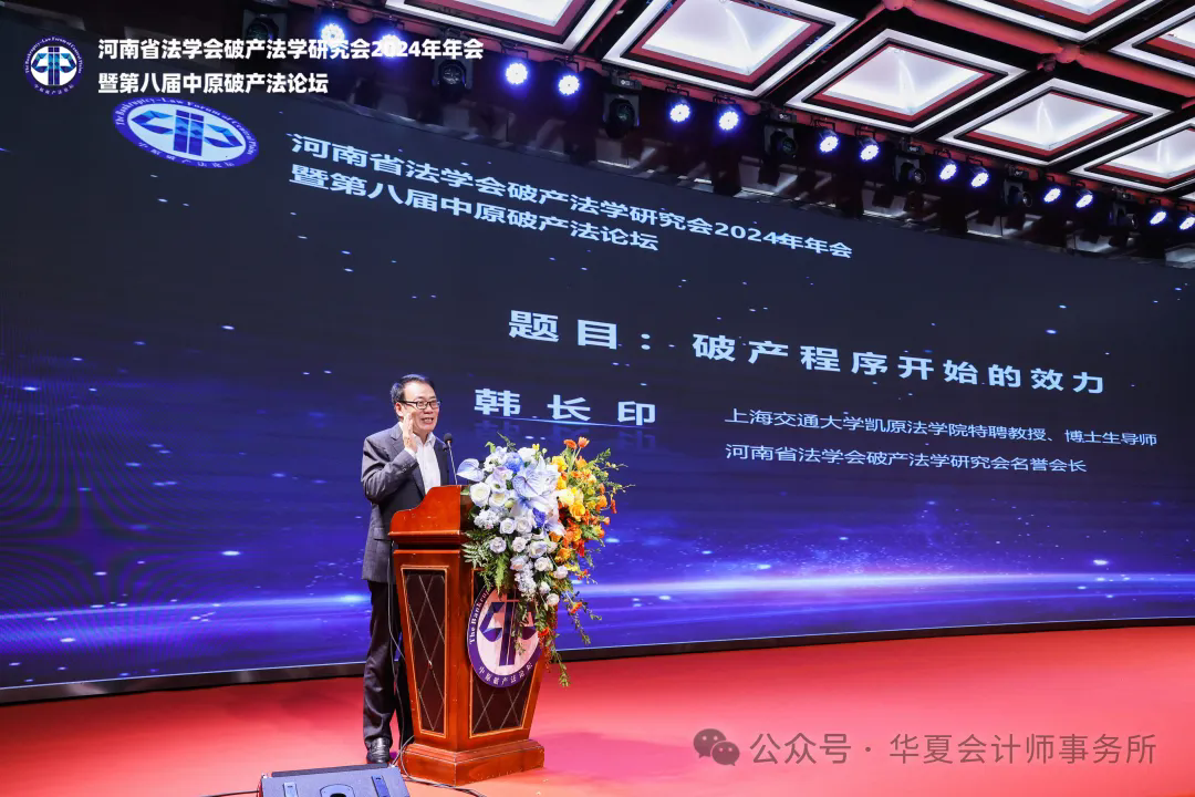 图:上海交通大学凯原法学院教授、博士生导师、河南省法学会破产法学研究会名誉会长韩长印发言